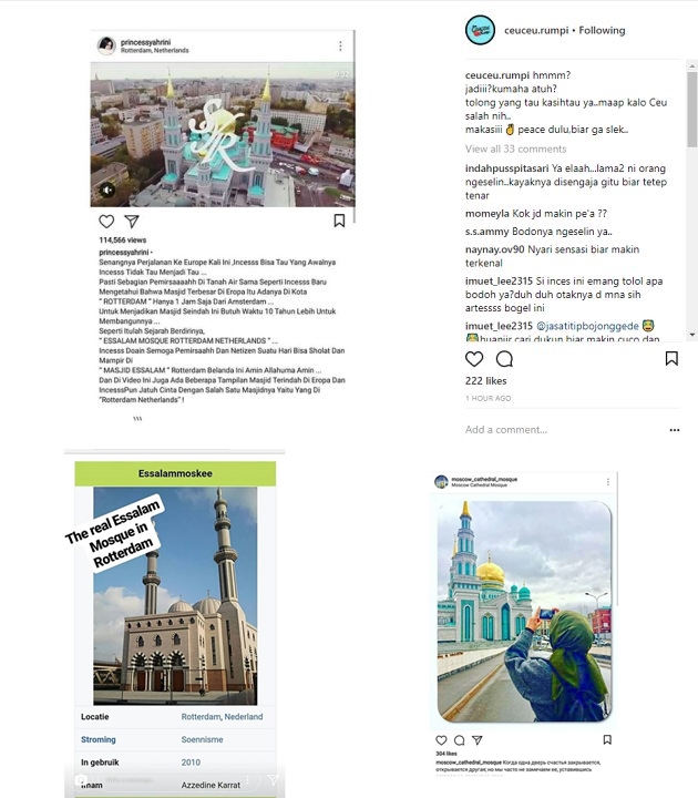 Walaupun menutup kolom komentar, unggahan Syahrini ini diposting ulang oleh akun gosip ceuceu.rumpi. Menariknya, akun gosip ini juga memposting foto lain yang menunjukan jika masjid yang ada di video Syahrini itu sebenarnya adalah masjid Moscow Cathedral di Rusia.