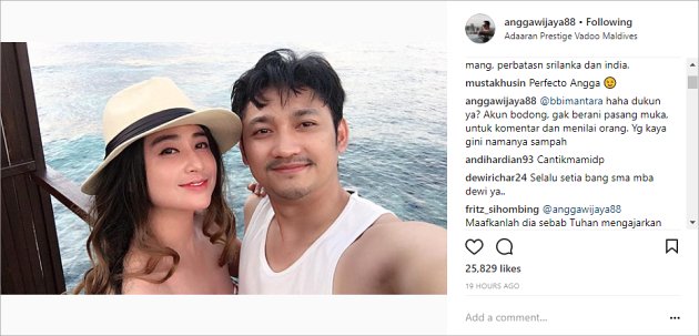 “Enak ya ke maldives oake duit istri yg kaya raya,” celetuk akun @bbimanxxxx. Mendapati komentar tersebut Angga pun tak tinggal diam. Pria yang juga berprofesi sebagai road manager Depe itu memberikan komentar bernada geram.