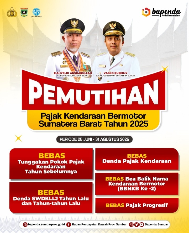 “Kebijakan ini merupakan bentuk kepedulian pemerintah terhadap kondisi ekonomi masyarakat pascapandemi, sekaligus mendorong kepatuhan pajak,” ujar Mahyeldi dalam keterangannya tertanggal 24 Juni 2025.