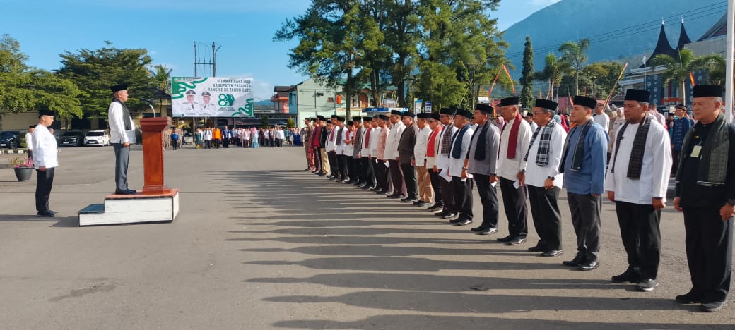 Dalam arahannya, Bupati Welly Suhery menegaskan bahwa apel tersebut memiliki makna istimewa karena bertepatan dengan peringatan Hari Jadi Kabupaten Pasaman ke-80, yang jatuh pada 8 Oktober 2025.