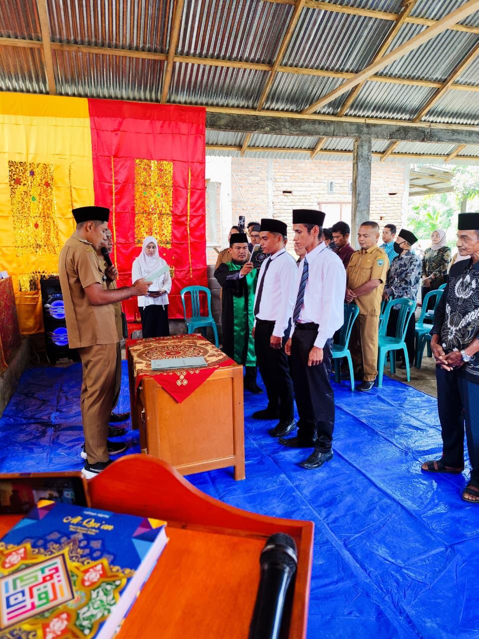Acara pelantikan berlangsung khidmat dengan penandatanganan berita acara dan pengambilan sumpah jabatan oleh para perangkat yang dilantik, disaksikan langsung oleh Wali Nagari Alahan Mati Hilia, Sepri Marial, S.Si, serta jajaran pemerintahan nagari.