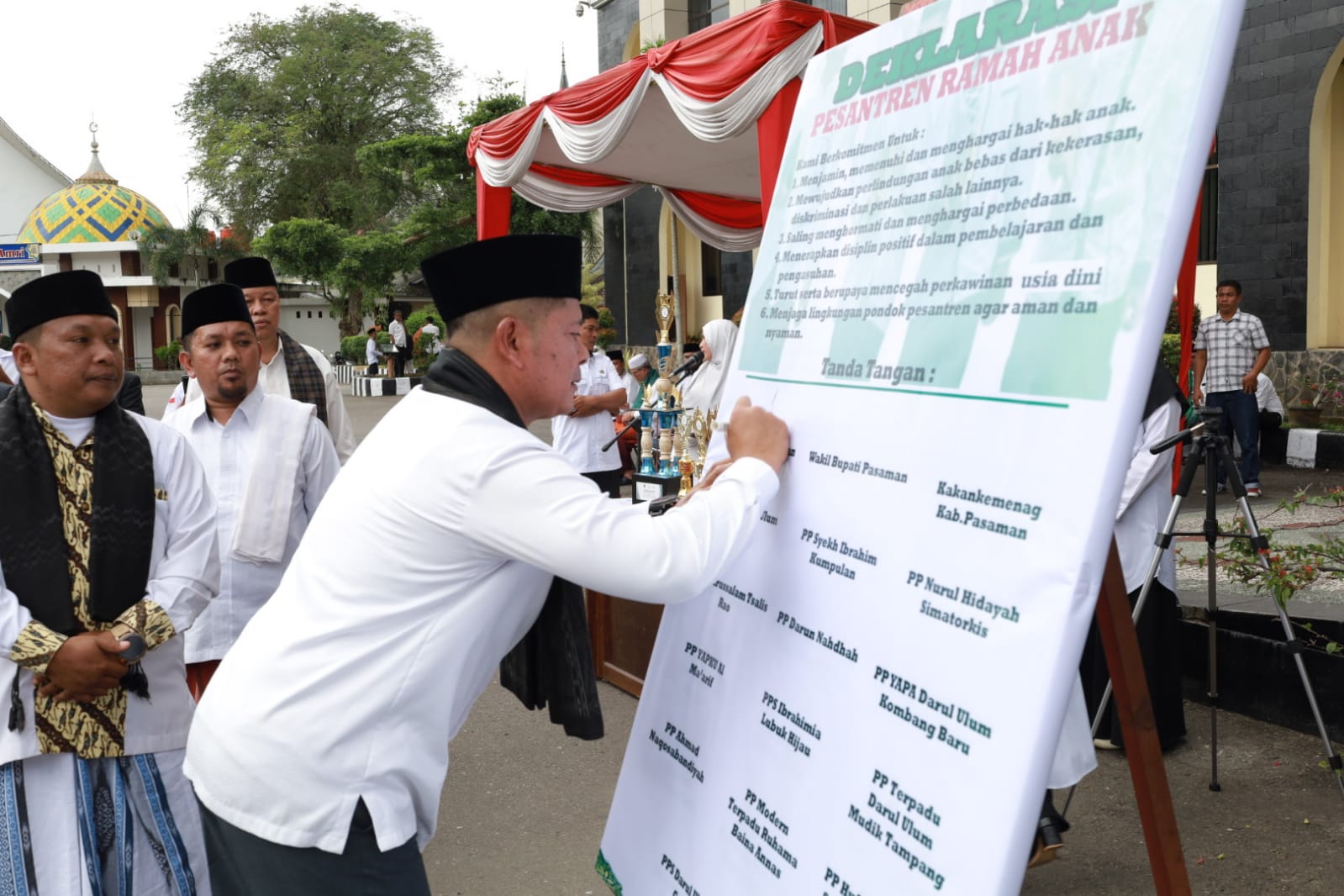 Kegiatan berlangsung khidmat dan penuh semangat kebangsaan. Dalam apel tersebut, juga dilakukan pembacaan dan penandatanganan Deklarasi Pesantren Ramah Anak. Deklarasi ini menjadi bentuk komitmen bersama seluruh pesantren di Pasaman untuk menciptakan lingkungan pendidikan yang aman, nyaman, serta menjunjung tinggi nilai-nilai perlindungan terhadap anak.