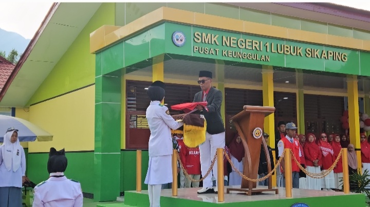 Upacara peringatan HUT RI ke-80 di SMK Negeri 1 Lubuk Sikaping ini menjadi wujud penghormatan kepada jasa para pahlawan serta penguatan karakter kebangsaan di kalangan siswa. (Joni)