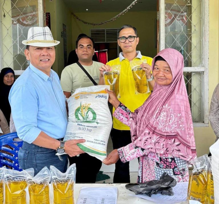 Adapun bantuan yang diberikan kepada setiap Keluarga Penerima Manfaat (KPM) terdiri dari 20 kilogram beras dan 4 kilogram minyak goreng.
